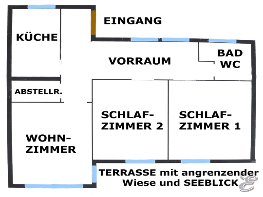 Unsere Ferienwohnung bietet Ihnen: zwei Schlafzimmer, Wohnzimmer, separate Küche, Bad und WC, Vorraum, Abstellraum, südseitige Terrasse mit unmittelbar angrenzender Wiese und Seeblick Weiters stehen Ihnen zur Verfügung: eigener kindgerechter Badeplatz, Tischtennis, Semmelservice, Einstellplatz für Fahrräder, Gartenmöbel, Grillmöglichkeit, PKW-Parkplatz, Ruderboot Über folgendes Kontaktformular können Sie schnell und unkompliziert eine unverbindliche Anfrage an uns richten. » zum Kontaktformular... Wir würden uns freuen, Sie als Gast in unserem Haus begrüßen zu dürfen! |